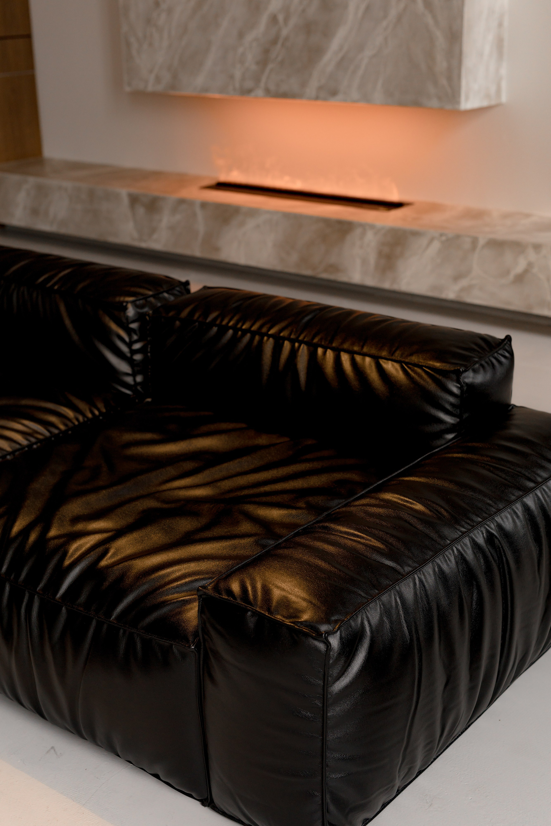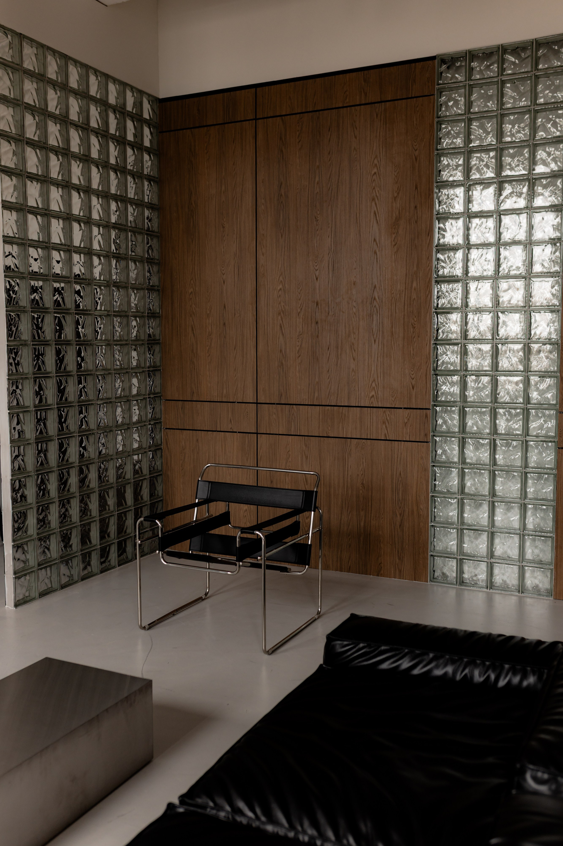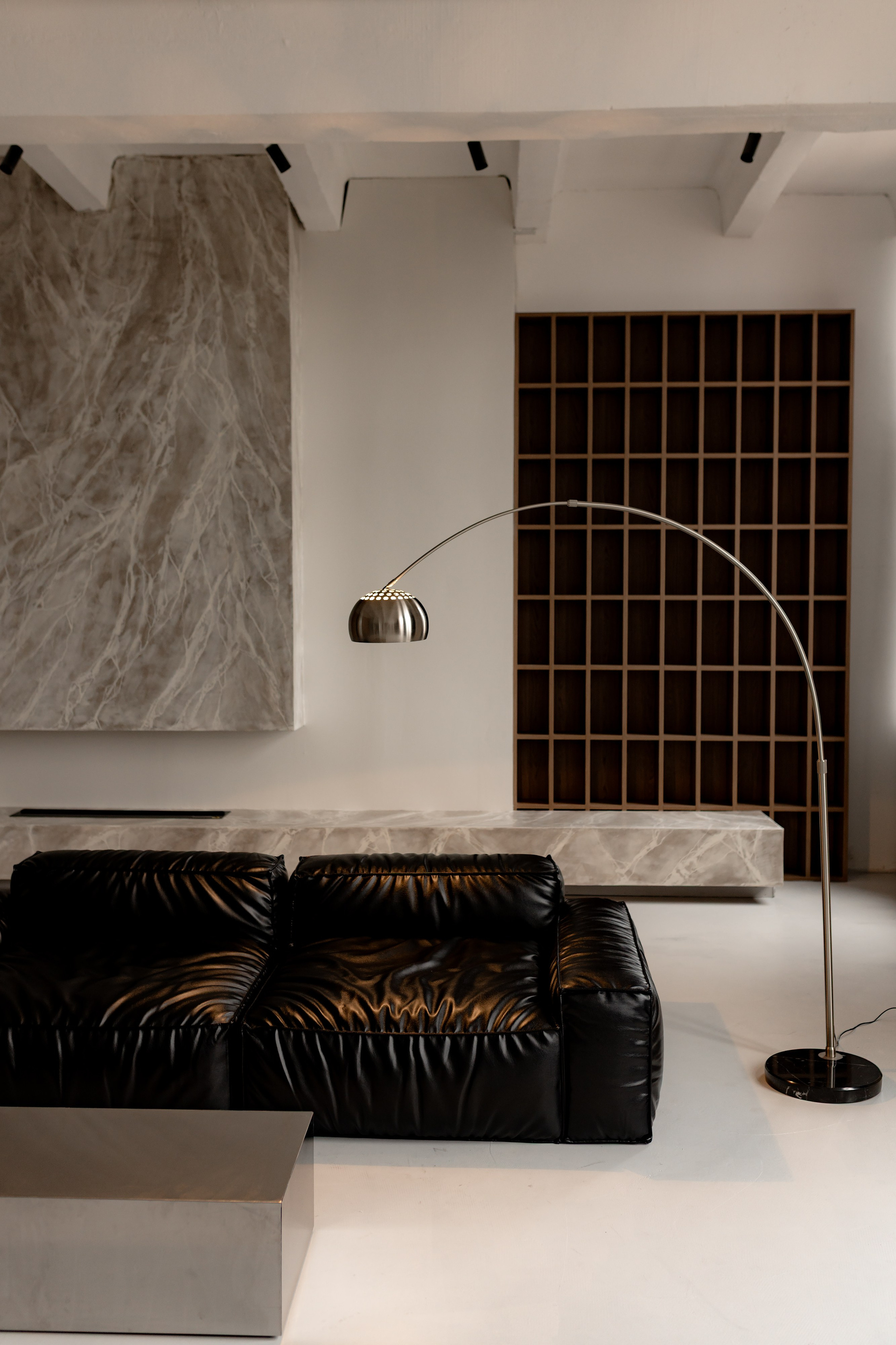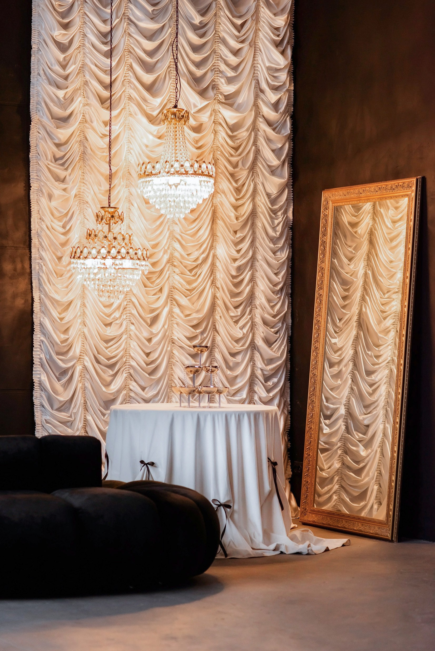 Студия с темным, минималистическим интерьером. Подходит под все виды фотосессий, детскую, семейную, свадебную, «лав стори» и т. д.
