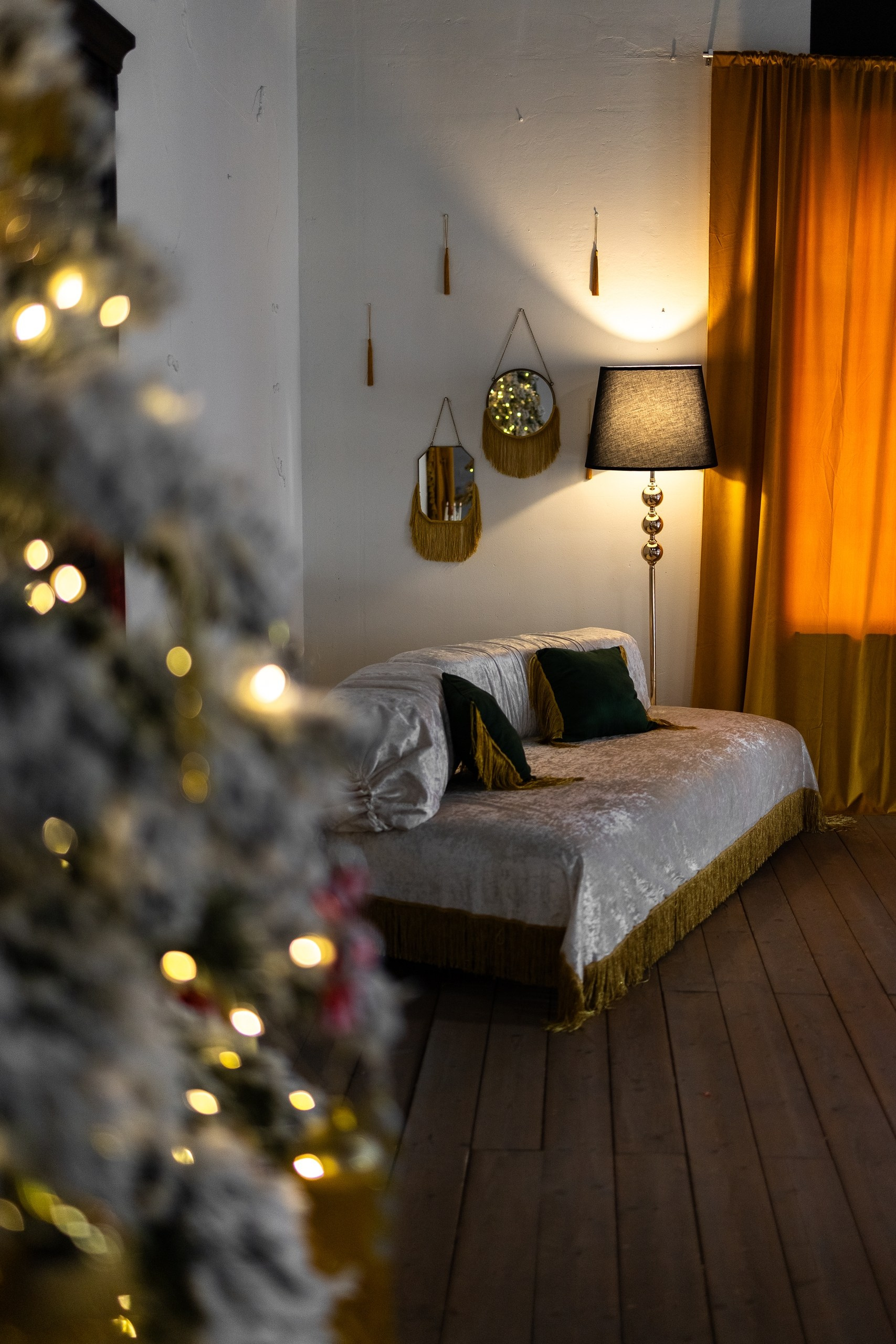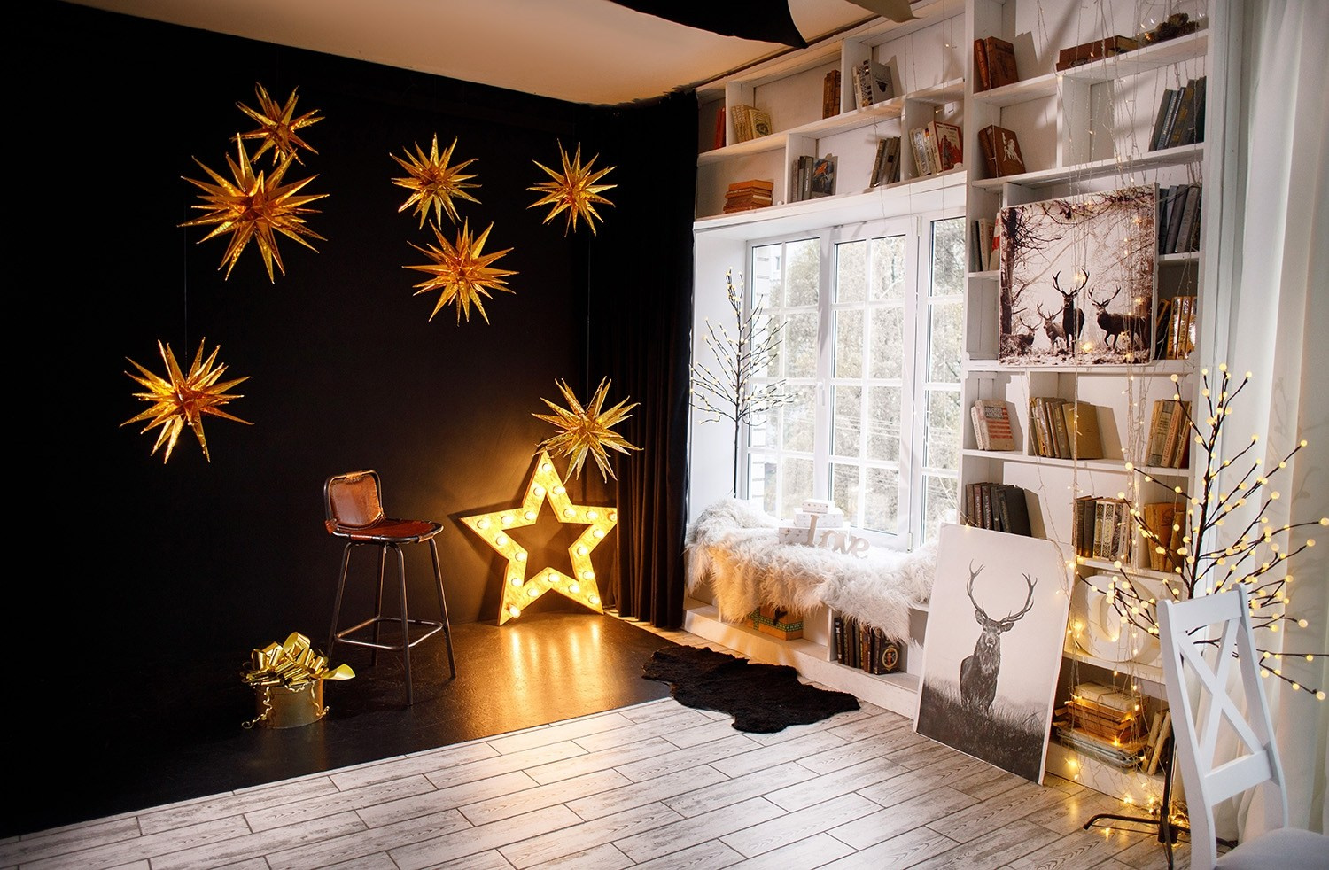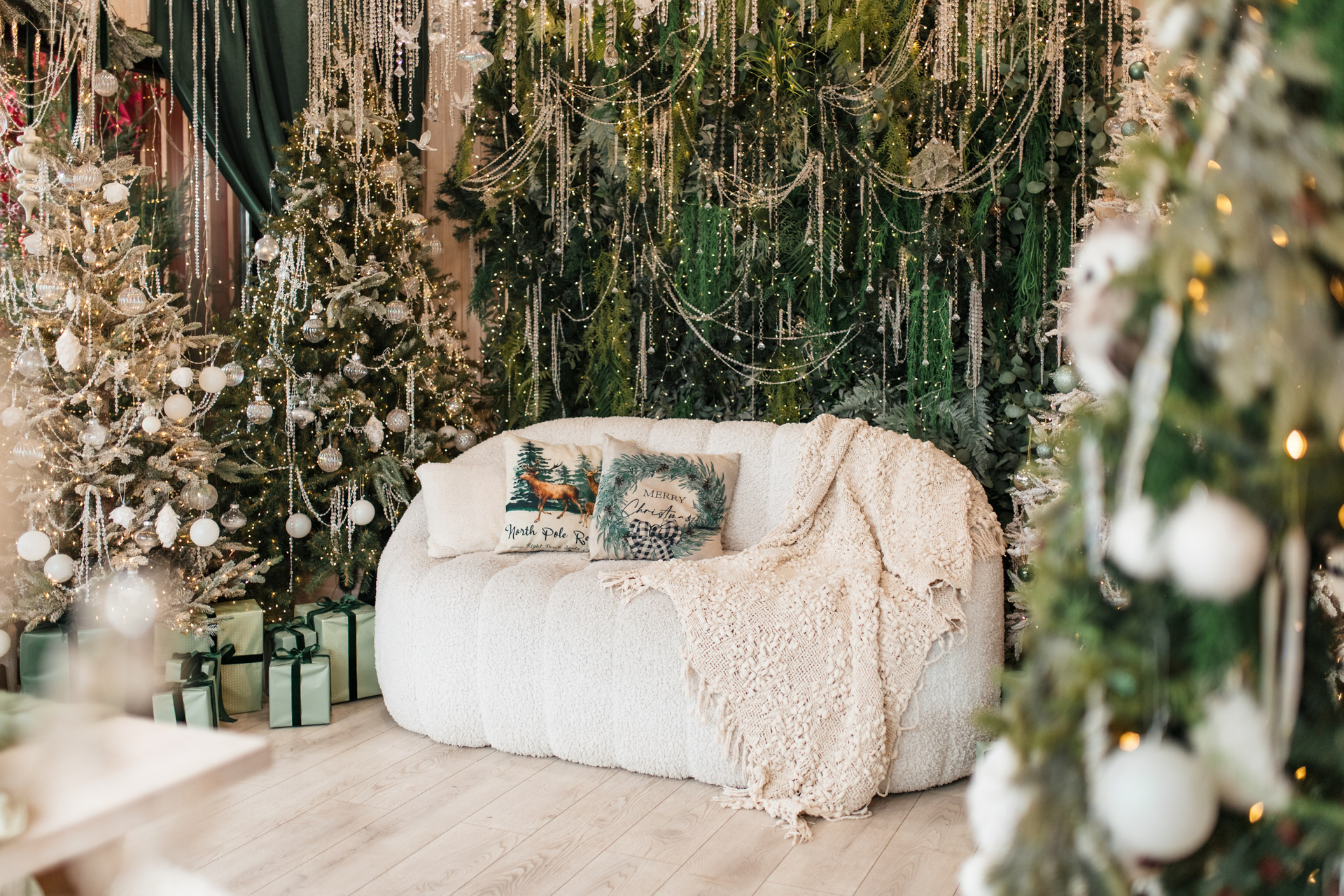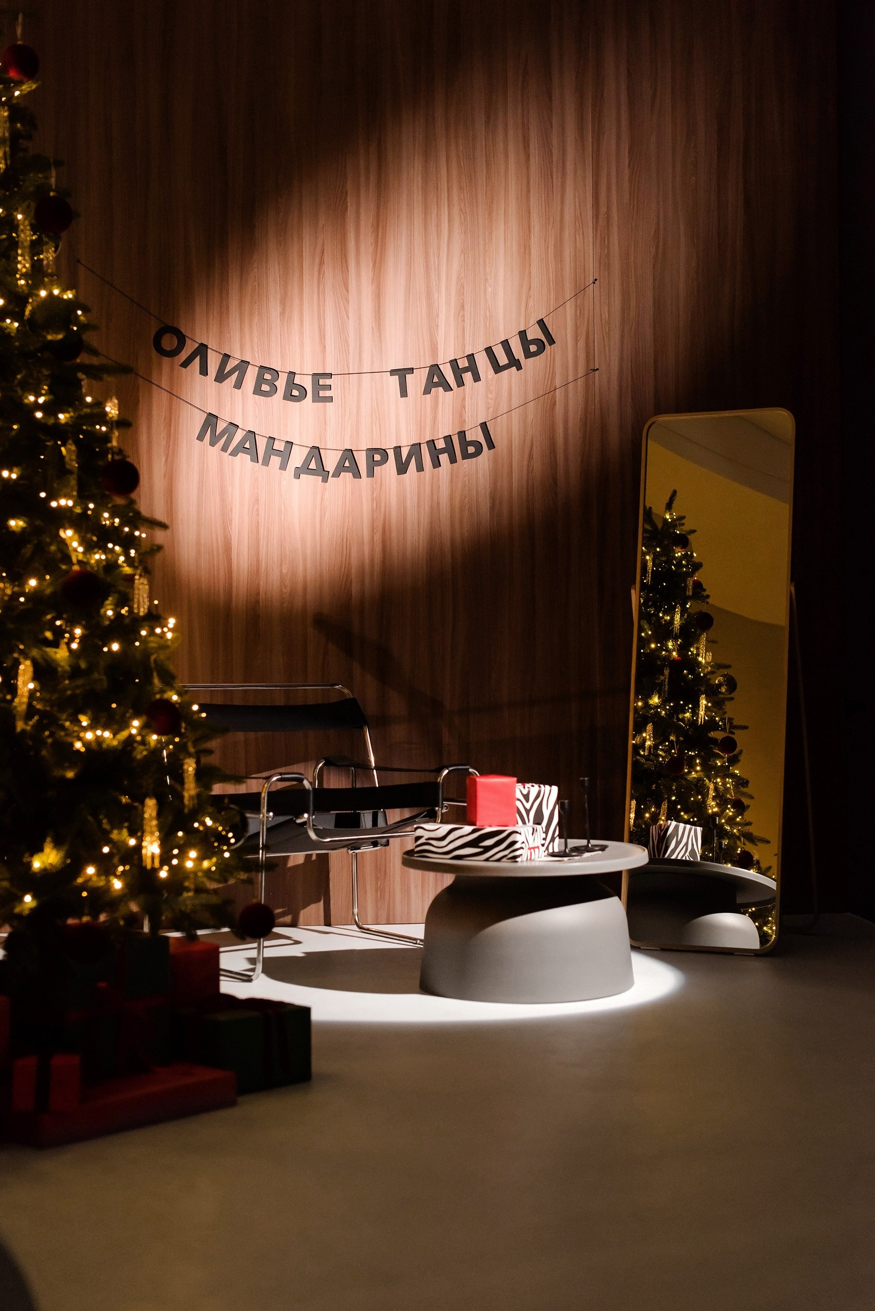 На фото актуальный Новогодний интерьер. Подходит для персональной, парной, детской, семейной фотосессии (небольшого состава)