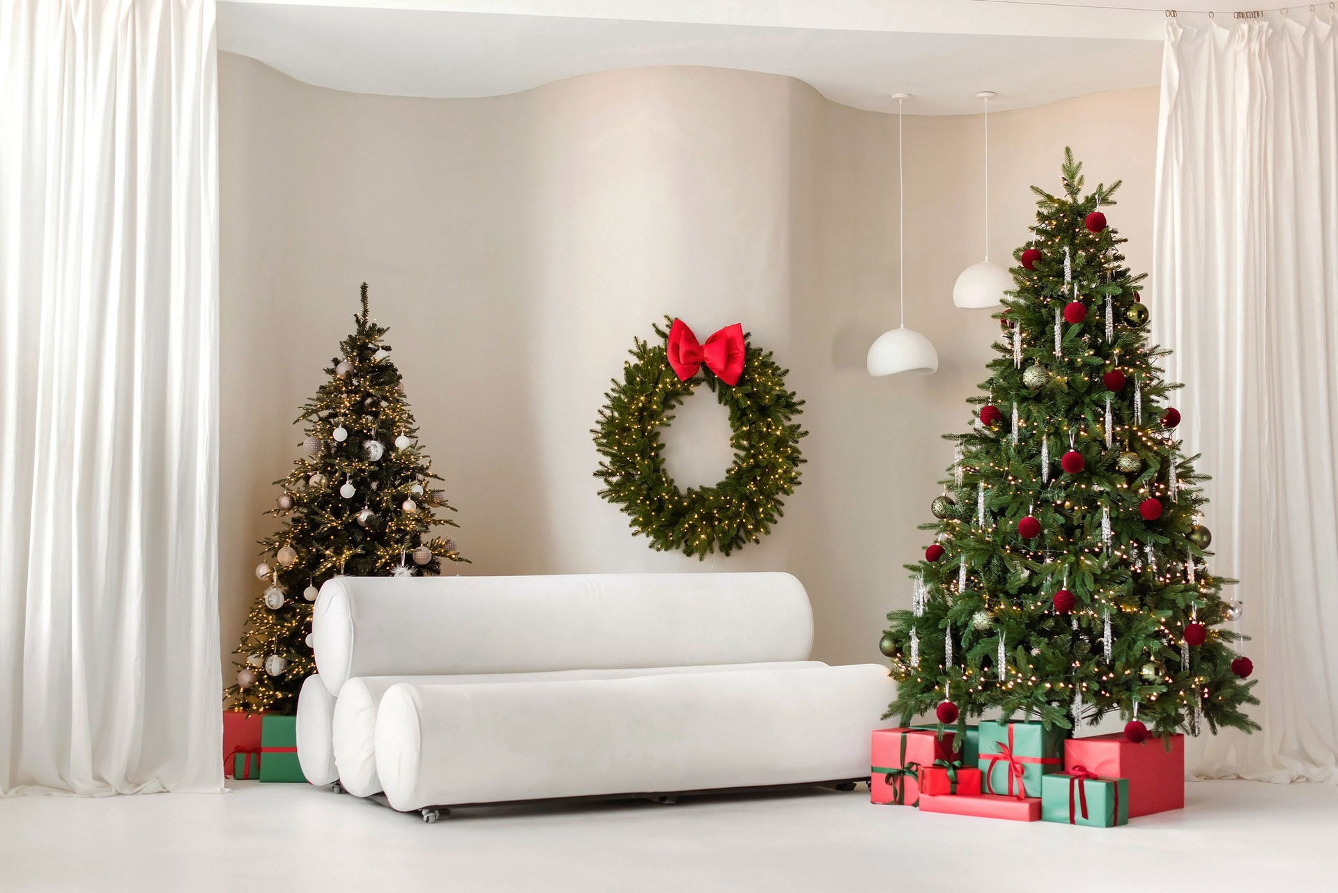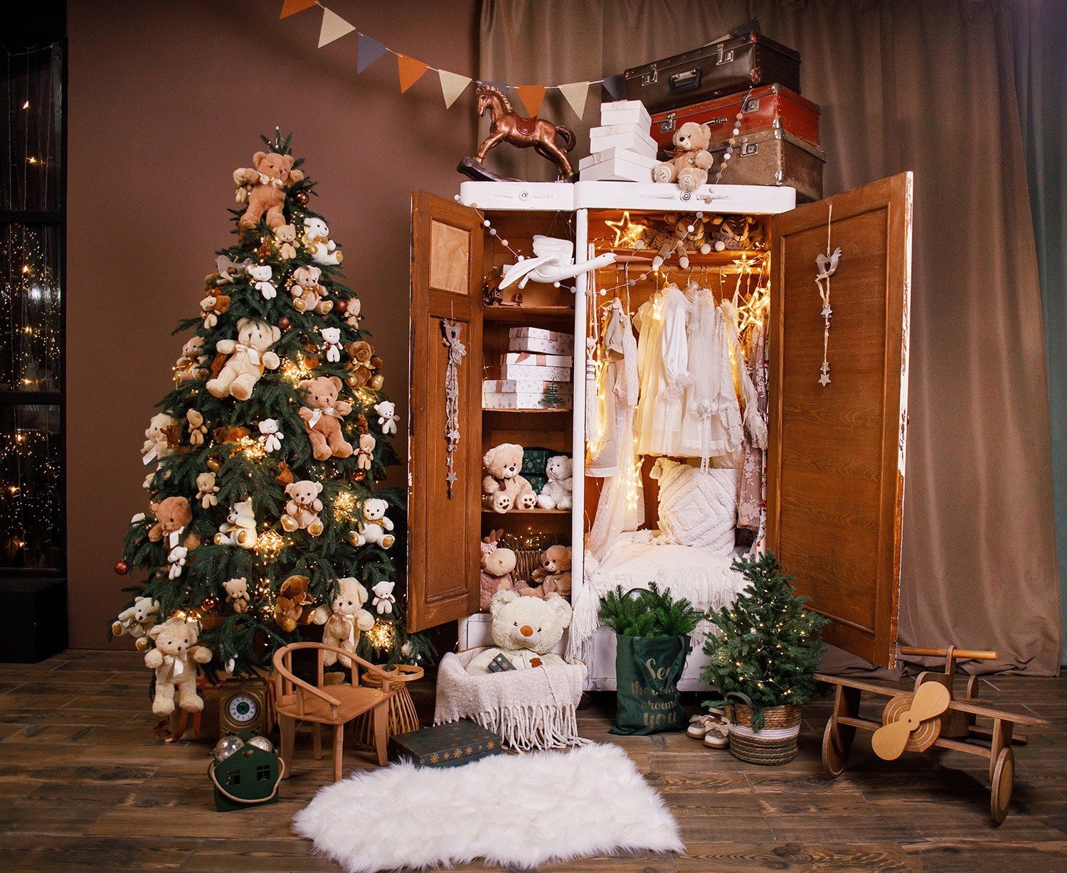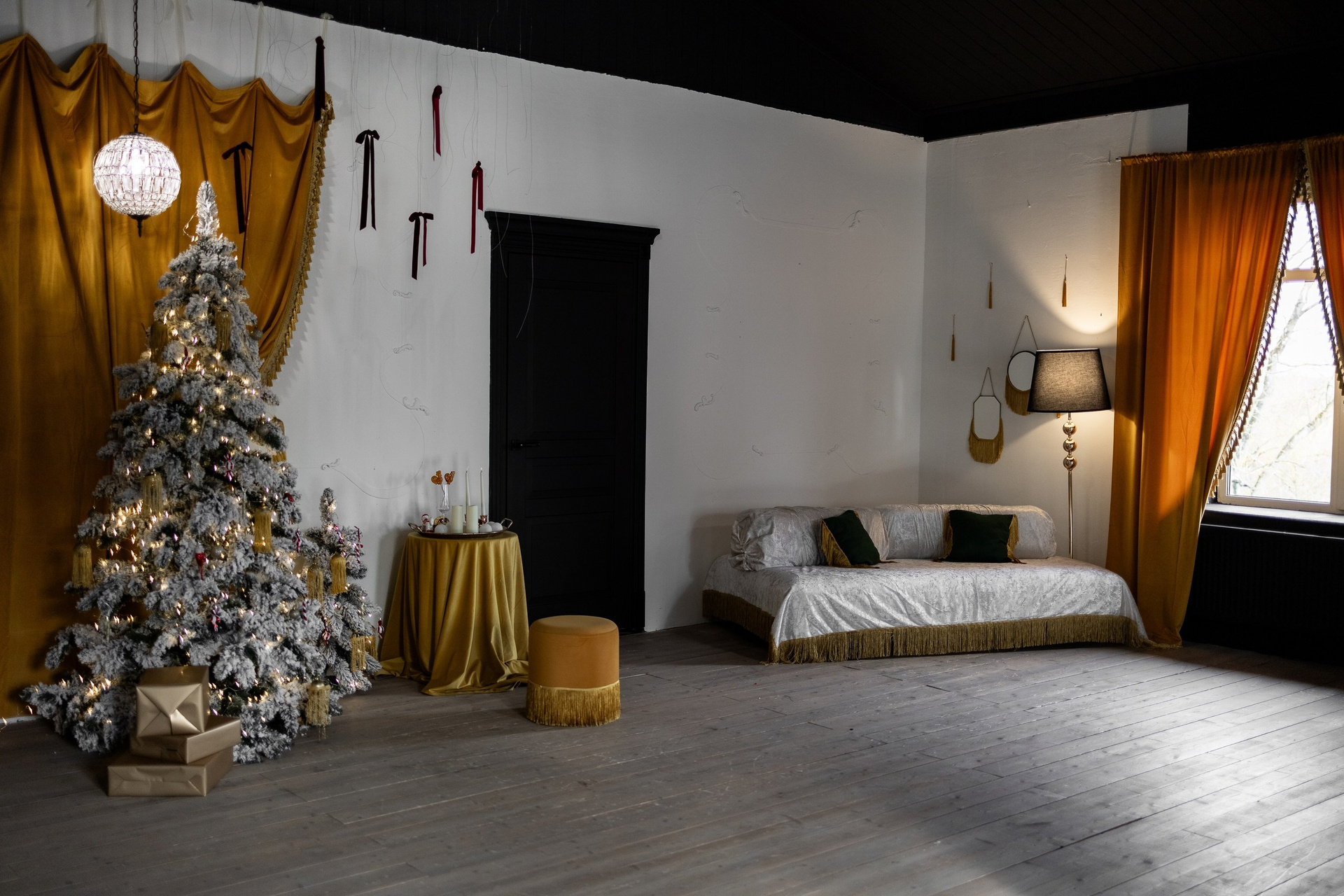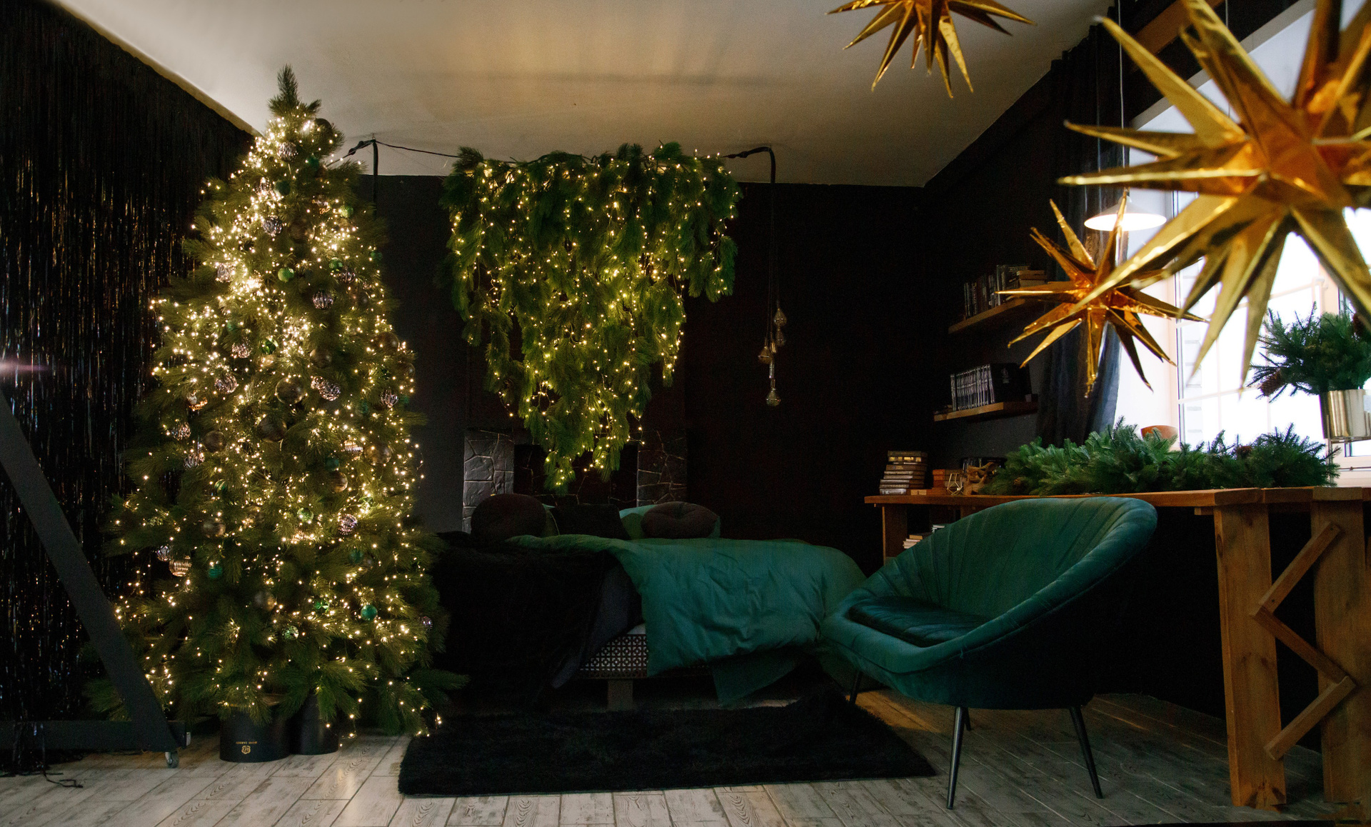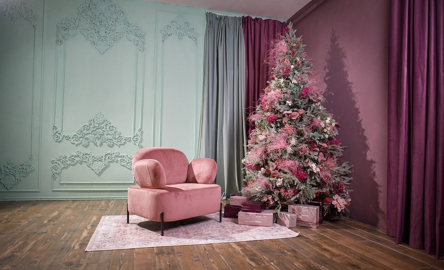 На фото актуальный Новогодний интерьер. Подходит для персональной, парной, детской, семейной фотосессии (небольшого состава)