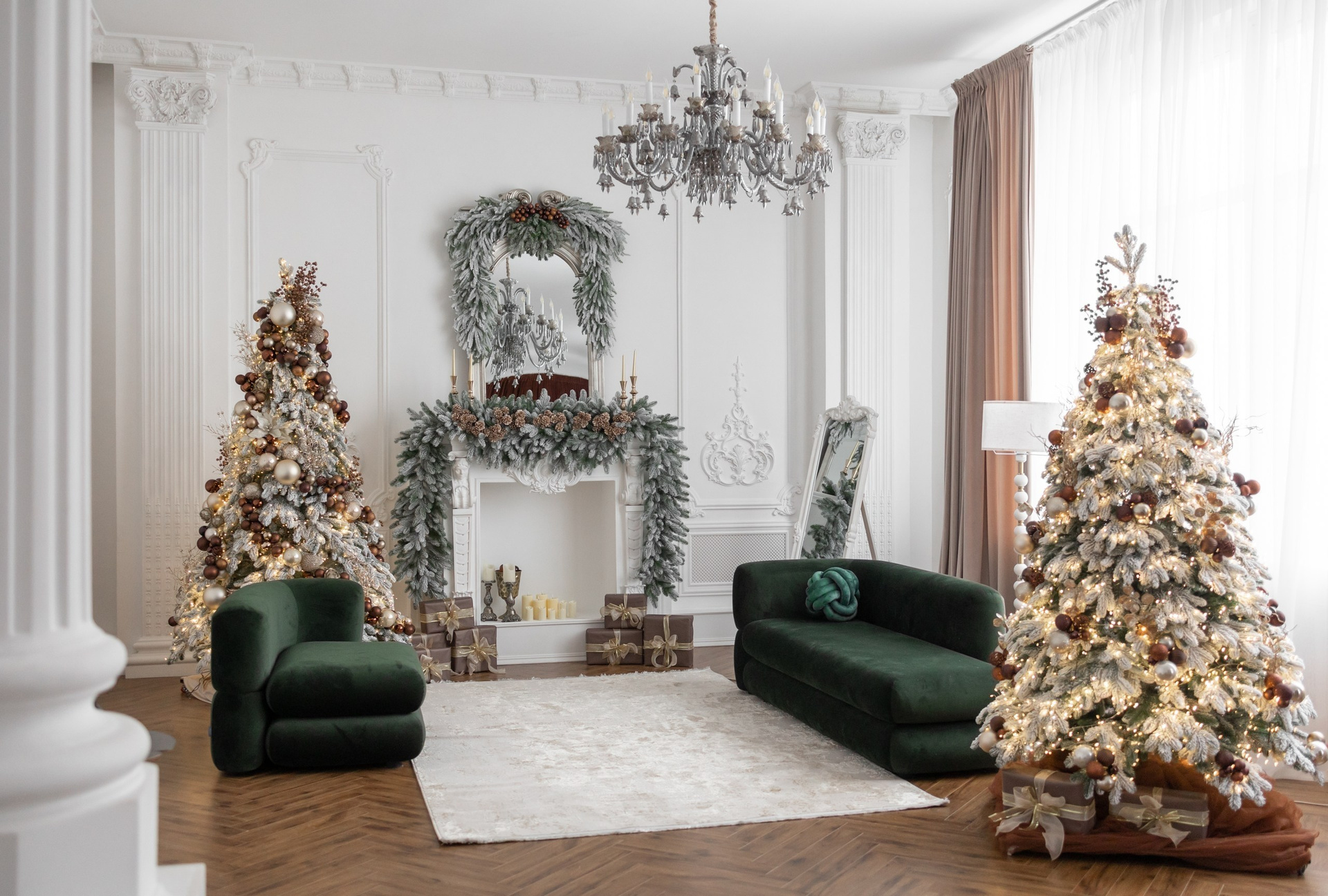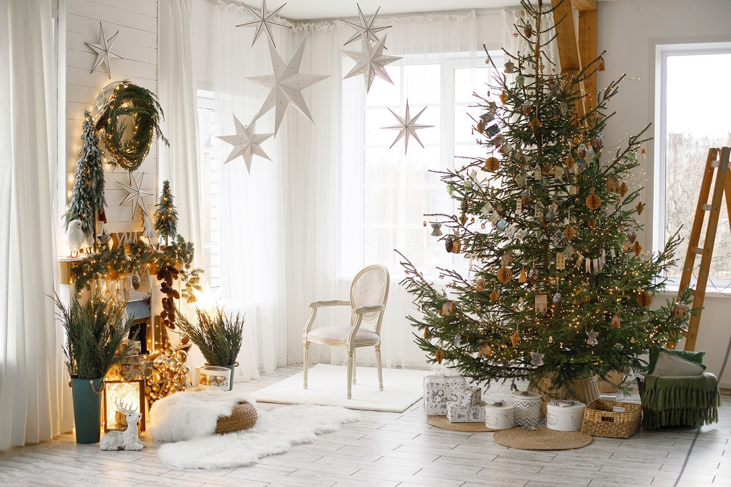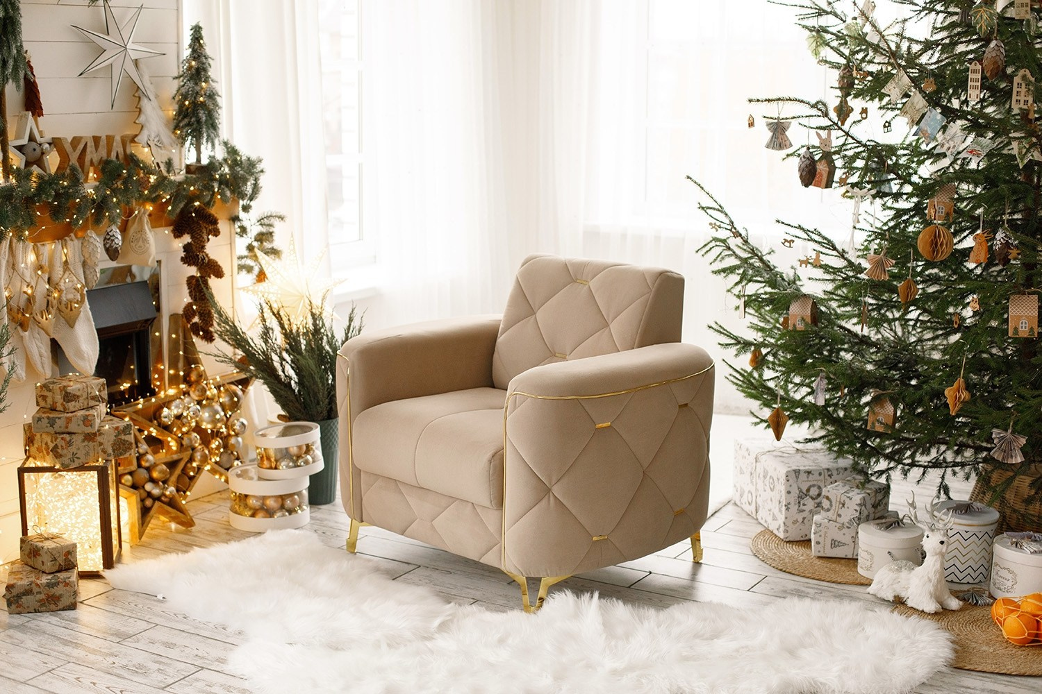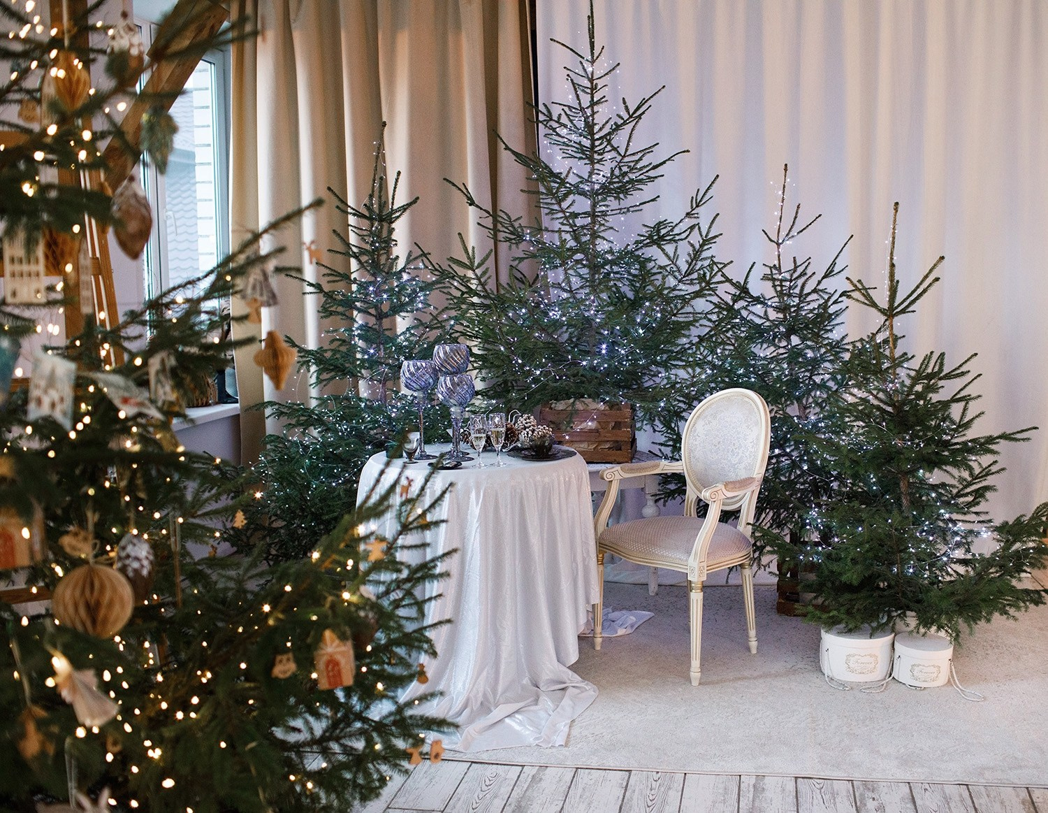 На фото актуальный Новогодний интерьер. Подходит для персональной, парной, детской, семейной фотосессии (небольшого состава)