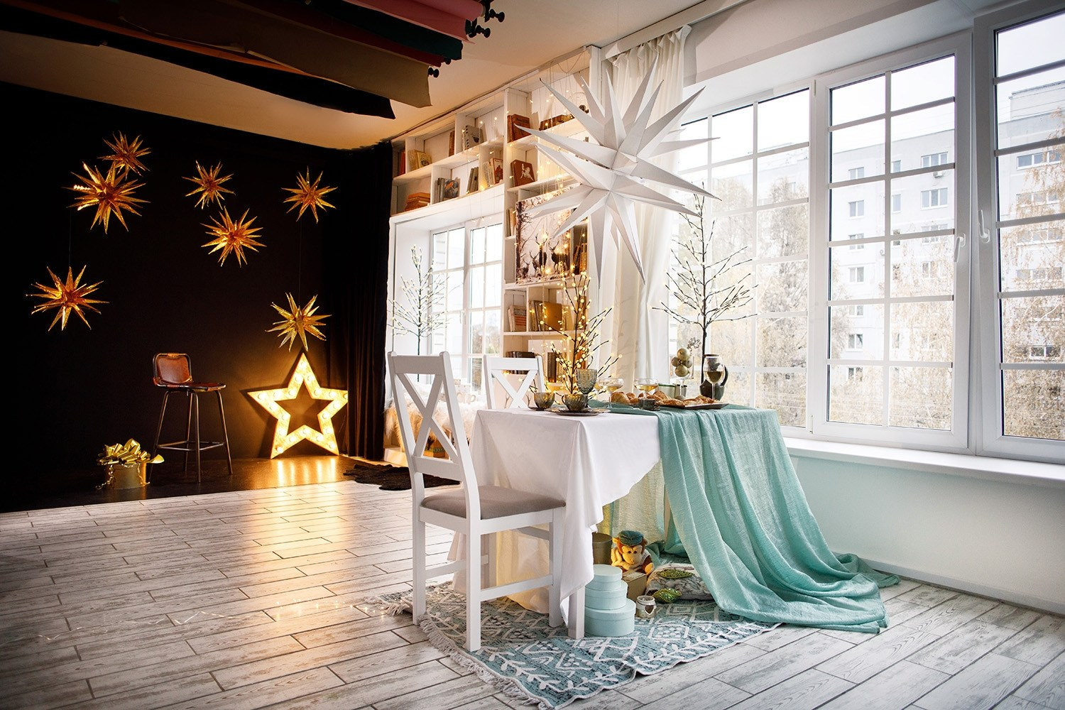 Светлая интерьерная фотостудия, для тех кто не хочет Новогоднего интерьера. Идеально подходит для персональной, деловой и контент съемки, а так же свадебной фотосессии и «лав-стори»